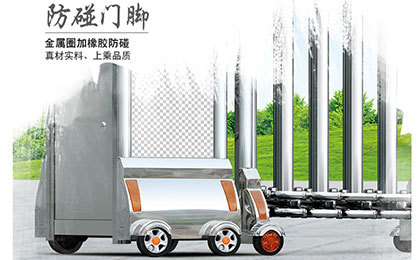 铝合金电动伸缩门 采用行业领先的电脉工艺工业高强度铝合金,造型均经本公司技术人员根据结构特点精心设计而成,从而使型材结构更合理、耐用。材质采用高强度铝合金,强度、密度和耐腐蚀性都明显提高,从而保证了使用寿命;色泽方面,经电脉工艺处理,附着力强,可保持颜色鲜艳亮丽,长时间不掉色,不褪色,抗氧化,并可选择:金、银、黑等颜色。门主体结构与不锈钢相似,也是利用平行四边形的运动原理,采用标准的铝合金型材直接用模具压制成型,然后通过镀锌管以及交叉连杆连接而成。与传统的不锈钢电动门相比,材质更优,造型更美观,更加耐腐蚀。